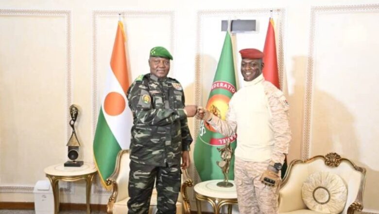 En escale à Ouagadougou, le président nigérien Abdourahamane Tiani a rencontré le capitaine Ibrahim Traoré. Les deux dirigeants ont réaffirmé leur engagement à renforcer la Confédération des États du Sahel face aux défis sécuritaires et économiques.