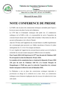 La Fédération des associations islamiques du Burkina a émis une note ce 6 mars 2024, annonçant la tenue d’une réunion des membres de la commission lune. Celle-ci se déroulera le dimanche 10 mars 2024, à la Grande Mosquée de Ouagadougou. L’objectif de cette réunion est la recherche de l’apparition du croissant lunaire, marquant ainsi le début du mois de Ramadan 2024.